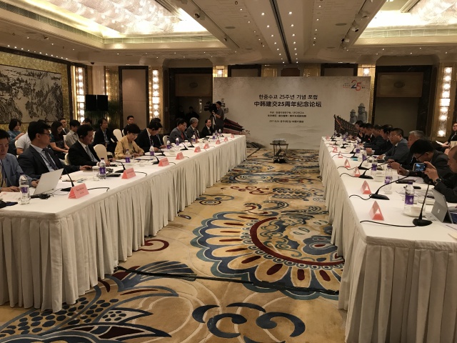 此次論壇是中韓建交25周年的系列活動(dòng)之一,主辦雙方旨在通過(guò)智庫(kù)交流進(jìn)一步推進(jìn)中韓公共外交,為兩國(guó)關(guān)系的恢復(fù)和平穩(wěn)健康發(fā)展貢獻(xiàn)積極力量。致辭嘉賓還包括韓國(guó)前駐華大使、未來(lái)研究院院長(zhǎng)辛正承,盤(pán)古智庫(kù)理事長(zhǎng)易鵬,盤(pán)古智庫(kù)學(xué)術(shù)委員會(huì)名譽(yù)主任、中共中央對(duì)外聯(lián)絡(luò)部原副部長(zhǎng)于洪君,韓國(guó)外交部公共外交大使樸銀夏等。韓中未來(lái)研究院執(zhí)行委員、前外交官丁相基,盤(pán)古智庫(kù)專(zhuān)家張璉瑰、朱鋒、高揚(yáng)、王棟、岳立、安剛、梁亞濱等參加了主題發(fā)言和討論環(huán)節(jié),針對(duì)過(guò)去25年間中韓關(guān)系發(fā)展歷程、目前中韓關(guān)系的癥結(jié)以及未來(lái)中韓關(guān)系發(fā)展方向等問(wèn)題給出了意見(jiàn)與建議。